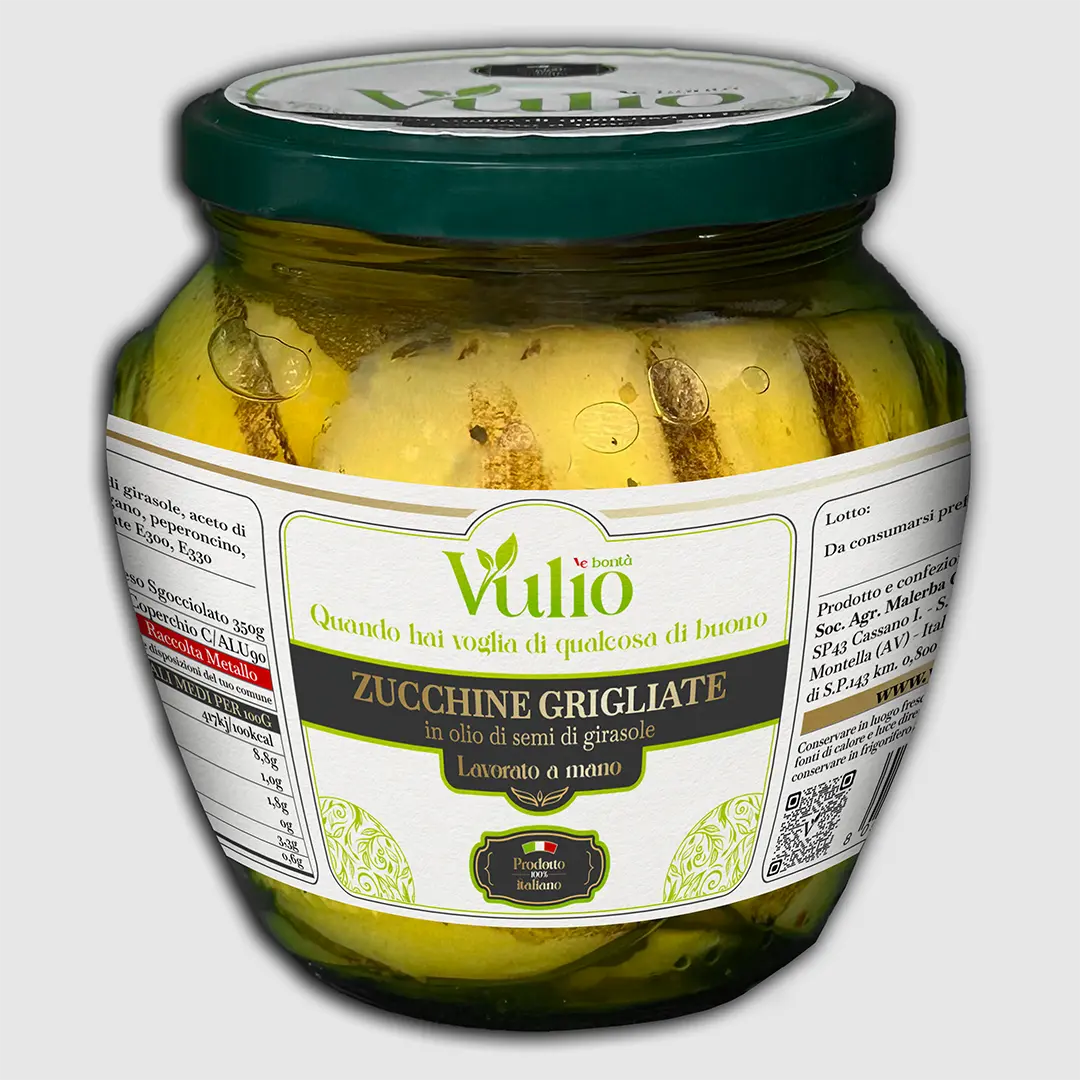 Ottime per creare cesti gastronomici artigianali insieme agli altri prodotti Vulìo ‘e Bontà: friarielli, paté e passate di pomodoro. Un regalo perfetto per gli amanti della cucina tradizionale e dei sapori genuini. Le Zucchine grigliate sott’olio Vulìo ‘e Bontà portano in tavola gusto autentico, lavorazione artigianale e qualità tutta italiana. Un prodotto semplice, naturale e pronto da servire per arricchire ogni piatto con un tocco genuino.| 5 |